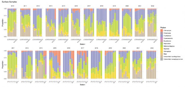 圖5 浮游植物群落組成的時(shí)空動(dòng)態(tài)(2010-2022)