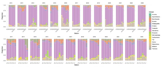 圖7 浮游動(dòng)物群落組成的時(shí)空動(dòng)態(tài)(2010-2023)