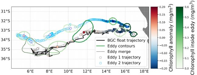 渦旋可捕獲富營養(yǎng)水體且孤立于周邊環(huán)境,是研究水團(tuán)生物地球化學(xué)過程的天然“實(shí)驗(yàn)室”。傳統(tǒng)歐拉觀測難以追蹤移動渦旋,而UVP6與生物地球化學(xué)Argo(BGC-Argo)浮標(biāo)的結(jié)合,實(shí)現(xiàn)了對渦旋的長期跟隨式觀測,為破解上述科學(xué)難題提供了關(guān)鍵技術(shù)支撐。