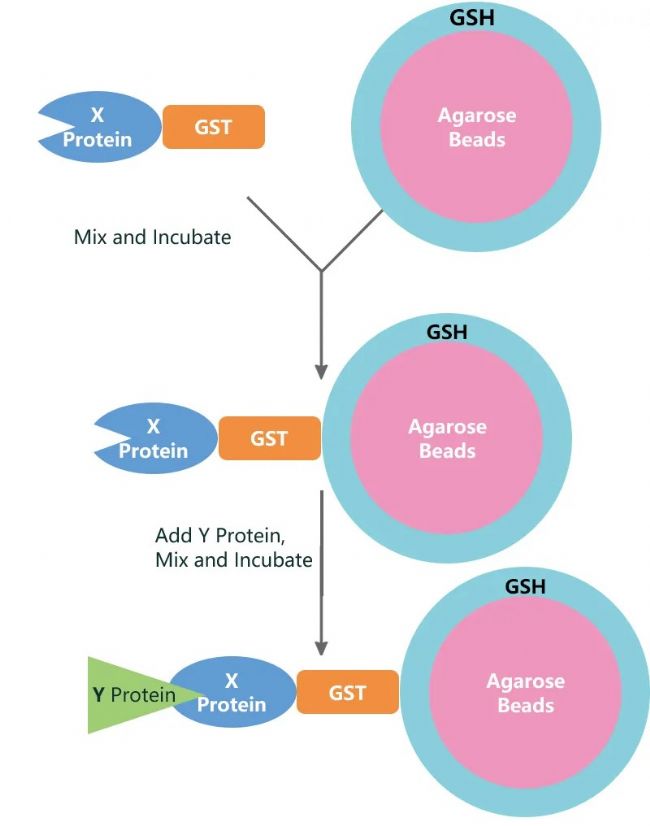 為提高實驗的特異性和效率,常將目標(biāo)"誘餌"蛋白與易于純化的標(biāo)簽蛋白進(jìn)行融合表達(dá)。其中,谷胱甘肽S-轉(zhuǎn)移酶(GST)融合系統(tǒng)因其操作簡便、純化條件溫和而被廣泛應(yīng)用。該系統(tǒng)基于GST與谷胱甘肽(GSH)間的高親和力相互作用:首先將GST融合蛋白固定在偶聯(lián)有GSH的瓊脂糖樹脂上,形成穩(wěn)定的親和界面;隨后使含有待測蛋白的溶液流經(jīng)該樹脂,"誘餌"蛋白即可捕獲溶液中與之相互作用的蛋白質(zhì)。
