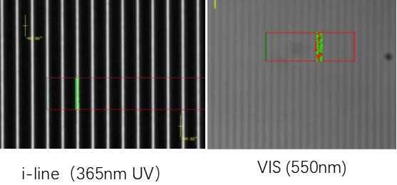 徠卡紫外成像系統(tǒng)搭載365納米紫外LED光源與150倍0.9NA紫外專(zhuān)用物鏡,實(shí)測(cè)可實(shí)現(xiàn)理論最低250納米左右的尺寸量測(cè),以及3σ 5納米的重復(fù)精度。