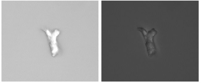 150倍可見(jiàn)光明場(chǎng)和150倍UV 效果對(duì)比