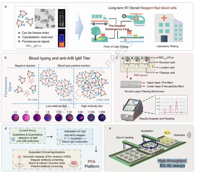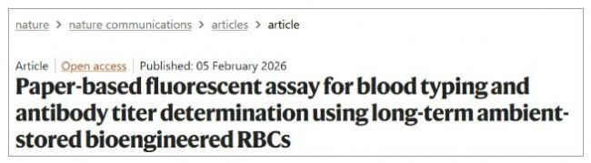 2026 年 1 月,中國(guó)科研團(tuán)隊(duì)于Nature Communications 發(fā)表研究結(jié)果,在床旁血型鑒定及抗體滴度檢測(cè)技術(shù)研究中取得了新進(jìn)展。開(kāi)發(fā)了一種基于生物工程紅細(xì)胞 (RBCbm@Fluo) 的用于血型鑒定及抗體滴度檢測(cè)的新型手持式紙基檢測(cè) POCT 方法。