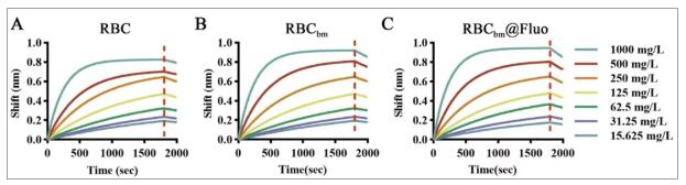 (2) 然后結(jié)合 RBC、RBCbm 和 RBCbm@Fluo 紅細(xì)胞(稀釋至 1×108 cells/mL);
