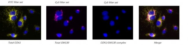 圖、使用NaveniTriflex cell 驗(yàn)證MCF7細(xì)胞中COX1/GM130的互作