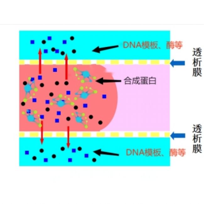 無細(xì)胞蛋白表達(dá):常規(guī)的無細(xì)胞蛋白表達(dá)反應(yīng),模板DNA、細(xì)胞提取液和其他組分混合放入透析管內(nèi),并放入特定成分的緩沖液。緩沖液中小分子包括氨基酸、核苷酸、ATP與其他因子會與透析管內(nèi)的成分進(jìn)行交換,持續(xù)提高反應(yīng)物濃度,促進(jìn)和提高蛋白質(zhì)產(chǎn)量。Scienova透析管透析效率顯著減少相關(guān)實(shí)驗(yàn)全程所需時(shí)間;惰性材質(zhì)及密封保證反應(yīng)科學(xué)性。