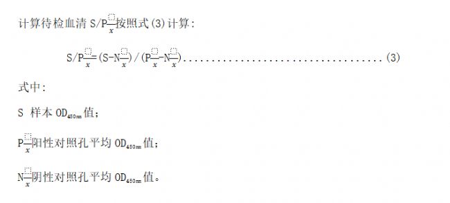 2、在U形96孔稀釋板中,用樣品稀釋液將待檢血清、陽性對(duì)照血清及陰性對(duì)照血清分別作1:100稀釋。使用Pipetty電動(dòng)移液器連續(xù)分液模式,每孔加入100μL稀釋后的血清樣品,每個(gè)對(duì)照血清各做兩孔重復(fù),將酶標(biāo)板置于37℃溫箱內(nèi)反應(yīng)60min。取出反應(yīng)板,棄去反應(yīng)液,用Pipetty每孔加入300μL洗滌液,洗滌5次,每次洗滌后在吸水紙上拍干。