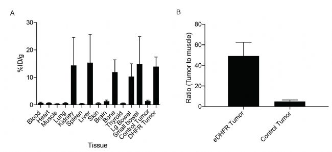 圖 4. 小鼠體內(nèi)實(shí)驗(yàn)檢測(cè)[18F]-TMP 和 eDHFR 的結(jié)合力【1】。