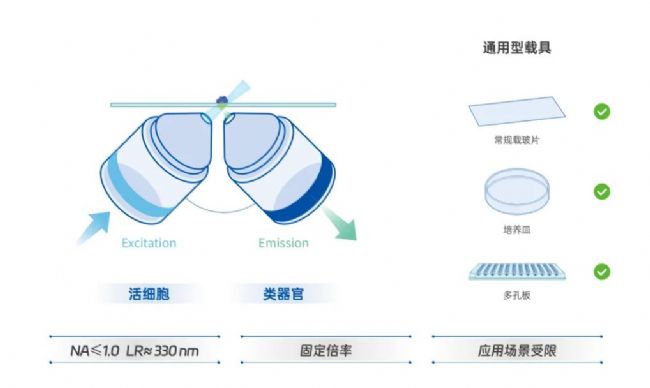 雖然第一代光片顯微鏡相對于共聚焦顯微鏡光毒性低,成像通量高,但其分辨率及易用性受限,且無法適配常規(guī)載具。