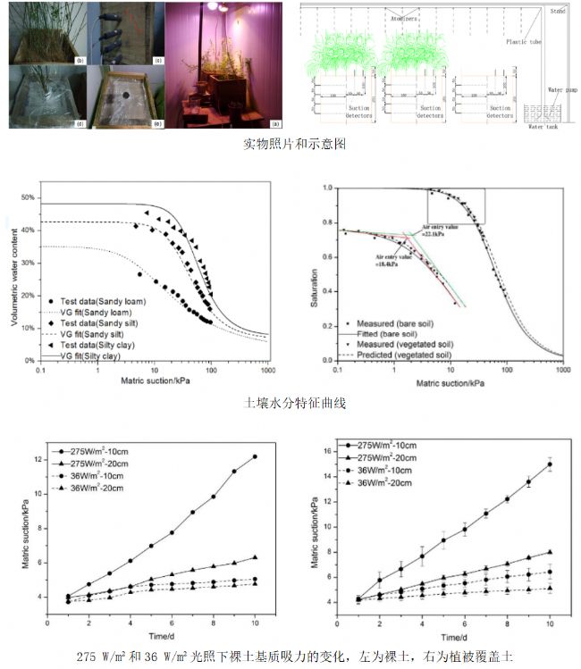 研究選取三種典型土壤(細(xì)砂壤土、砂質(zhì)粉土、粉質(zhì)黏土)與多花木蘭植物,通過控制實(shí)驗(yàn)探究基質(zhì)吸力變化。其中SoilTron®多功能小型蒸滲儀(北京易科泰提供)發(fā)揮了多參數(shù)同步監(jiān)測核心作用,包括多層剖面土壤溫度、多層剖面土壤濕度、多層剖面基質(zhì)吸力、精準(zhǔn)稱重等個(gè)多參數(shù)的實(shí)時(shí)測量,數(shù)據(jù)采集器自動(dòng)定時(shí)記錄, 為分析植被蒸騰與土壤蒸發(fā)對(duì)基質(zhì)吸力的影響提供了高分辨率數(shù)據(jù),結(jié)果顯示,植被土壤基質(zhì)吸力較非蒸散土壤高 1.5~2.0 倍,275W/m² 光照下植被土壤 10cm 深度基質(zhì)吸力增量(10.72±0.31kPa)顯著高于 36W/m² 組(2.23±0.25kPa)。