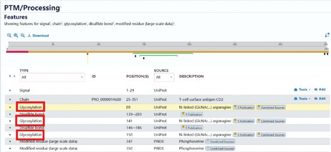 Uniprot中顯示CD2的糖基化